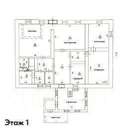 В цоколе - баня с дровяной печью, бассейн, комната отдыха и подсобные помещения. Требуется ремонт.