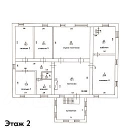 На первом этаже - гостиная с камином, кухня-столовая, кабинет, 4 спальни, на полу паркетная доска, дубовые двери