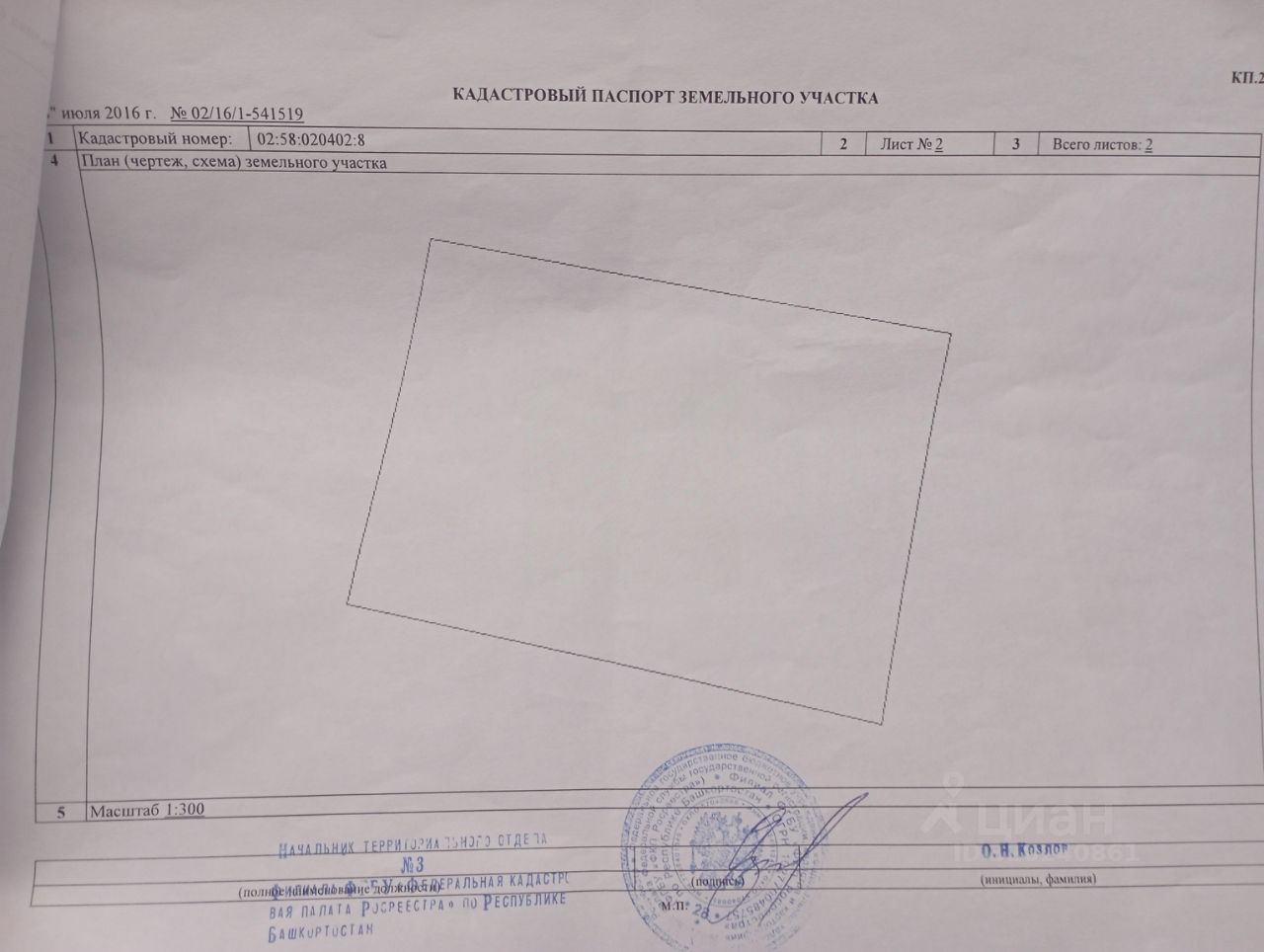 Кадастровый номер участка 02:5***:020402:*** указал продавец