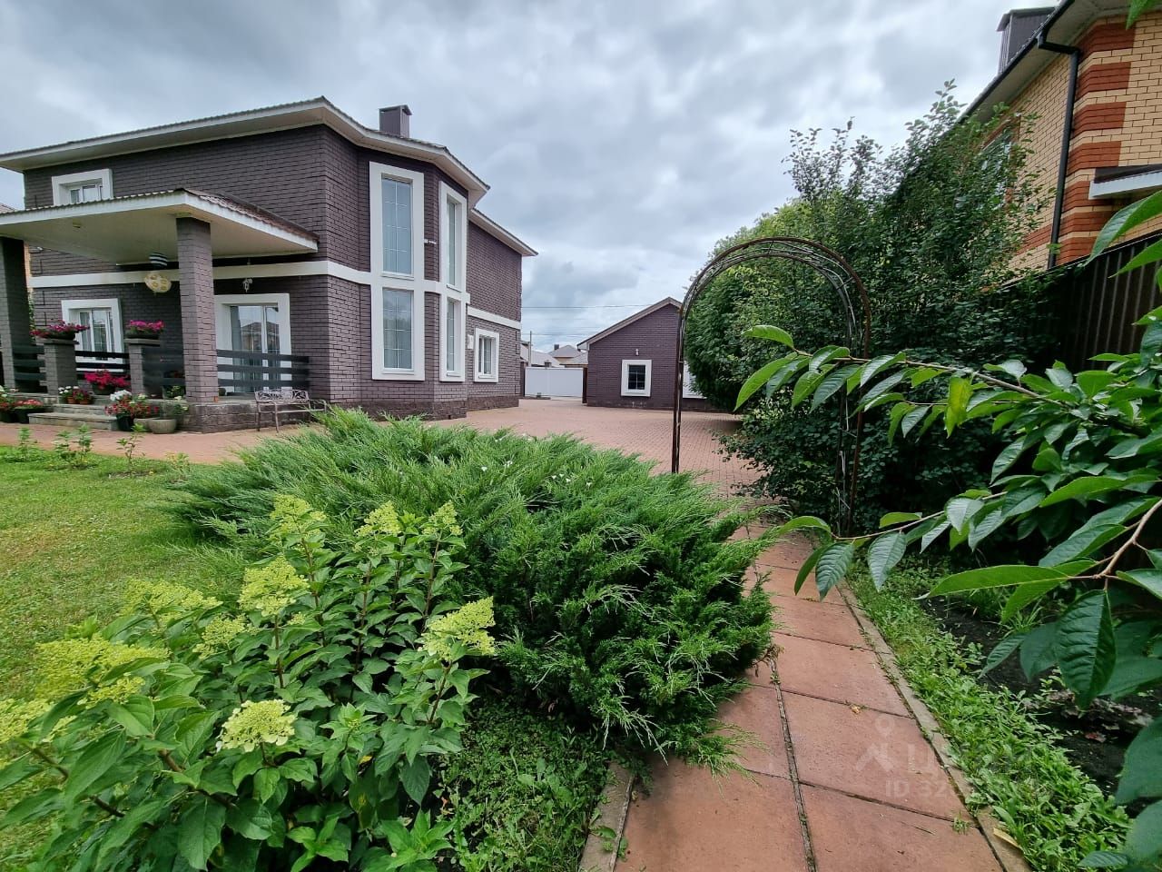 Ландшафтный дизайн, деревья крупномеры, двор брусчатка. Тихое экологичное место недалеко города. Все коммуникации централизованные (свет,газ,вода). Асфальт до участка, ограждение территории по периметру, шлагбаум.
