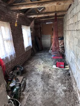 Кирпичный пристрой к дому 2004 года. На участке установлена поликарбонатная теплица, уличный и домашний туалет.