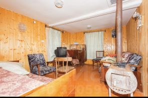 **Коммуникации**: газ - по границе участка; электричество - три фазы, без перебоев, отдельный трансформатор на улицу; водоснабжение- скважина общая с соседом, техническая вода - из естественной проточной запруды на участке.