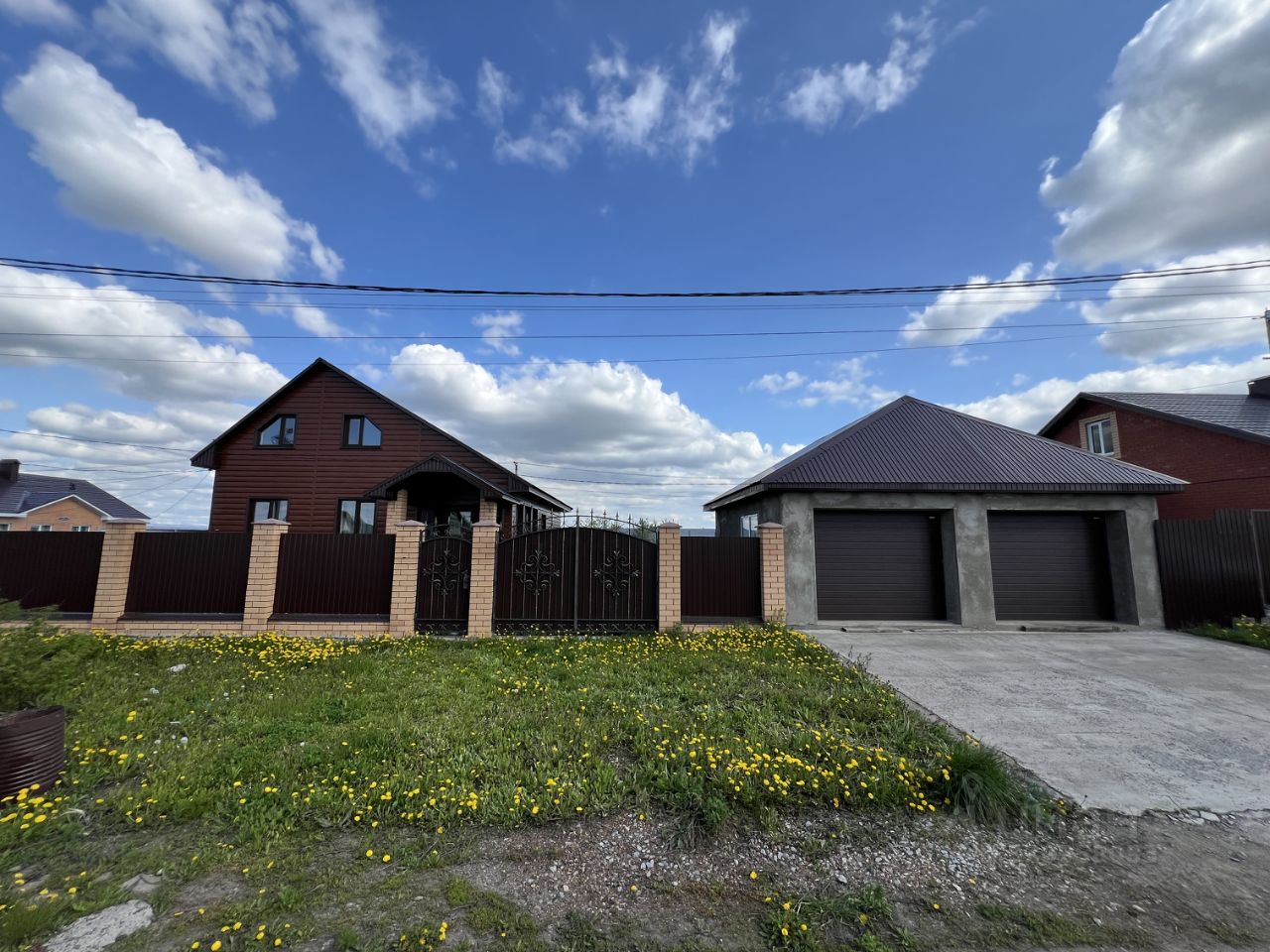 Участок огорожен забором, есть ворота и калитка. Гараж на 2 автомобиля, автоматические ворота.
