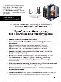 Мы продаем этот Объект по договору с Застройщиком по цене и на условиях Застройщика.