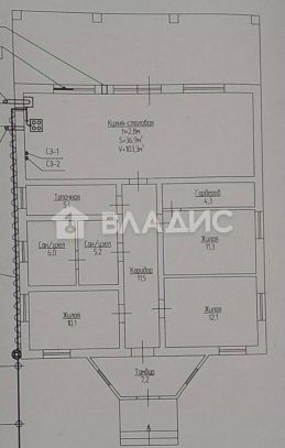 Имеет три комнаты и общую площадь 120 квадратных метров. Жилая площадь составляет 33,5 квадратных метров, а просторная кухня — 36,9 квадратных метров.