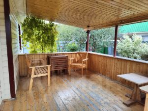 Дом летний, полностью перестроен в 2015 году, фундамент был укреплен, второй этаж возведен заново, дом утеплен, внутри обшит вагонкой, пропитан защитой, снаружи - профнастил, полностью заменена электрика. К дому пристроена большая открытая веранда. Внутри на первом этаже кухня, отдельная комната, большая кладовая. На втором этаже две комнаты. Продаем с мебелью/техникой как есть.