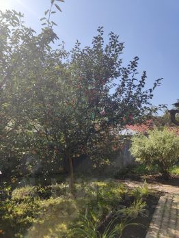 Есть п/я насаждения (яблони, малина, ирга, ежевика, жимолость, клубника, черноплодка, боярышник, смородина, крыжовник), туи, сосна, можжевельник, каштан.