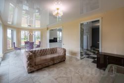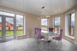 По всему коттеджу установлены качественные пластиковые окна. Отопление, также выполнено из качественных материалов. На полах: Керамогранит, кафель, Ламинат по дому. Потолки натяжные глянцевые и матовые с люстрами. Ремонт делали самостоятельно для себя.