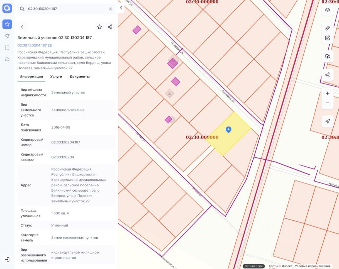 Местоположение: респ. Башкортостан, Караидельский район, с.Бердяш, улица Полевая, 27.