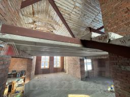 1 этаж - гостиная с кухней площадью 85 кв.м с прямым выходом на террасу, кабинет 19 кв.м, спальня 26 кв.м, котельная, ванная 14 кв.м высота до потолка 3 м.