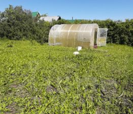 Имеется участок площадью 16 соток, участок ухоженный с насаждениями. На участке имеется баня, теплица, сарай. Детей возит в школу школьный автобус.
