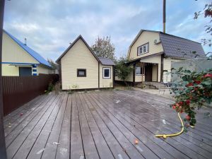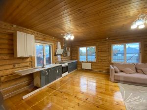 При входе в дом вы найдете просторную застекленную веранду, а на первом этаже большую кухню-гостиную с кухонным гарнитуром, санузел совмещенный расположен на первом этаже. На второй этаж ведёт удобная деревянная лестница, где расположены широкий тамбур и две комнаты. Все комнаты обшиты выгонкой и покрыты лаком, что придает интерьеру особый шарм.