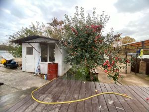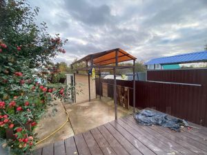На участке расположена просторная беседка, дровяник и складское помещение. Бельевая площадка под навесом и каркасный бассейн позволят вам насладиться уютом и комфортом дома.