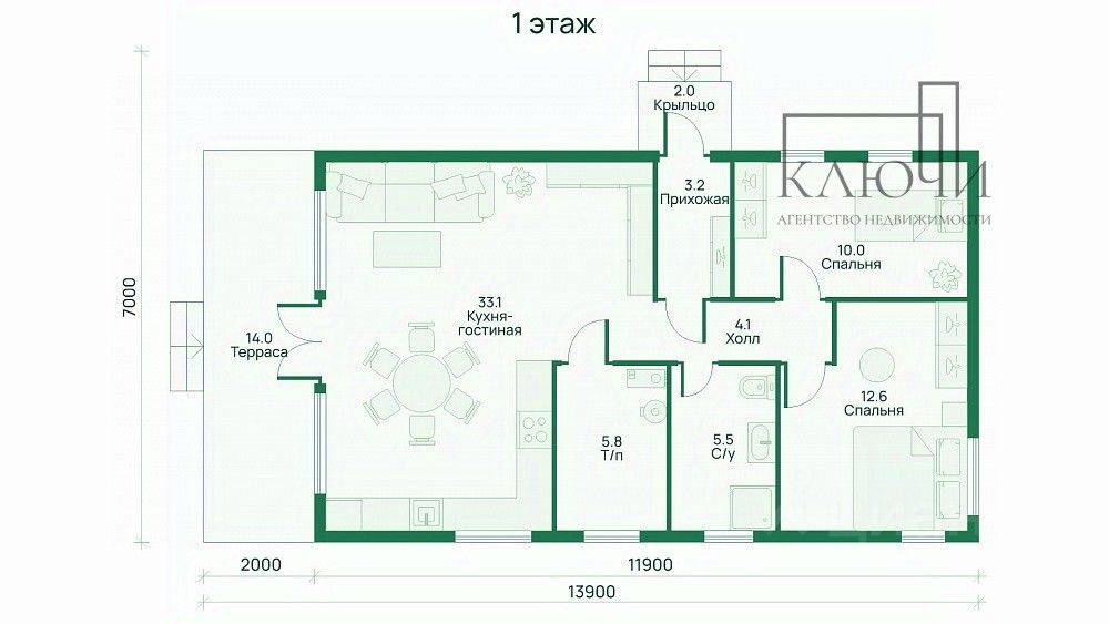 кухня-гостиная с выходом на террасу;