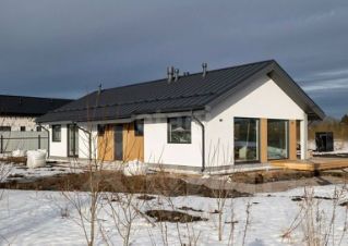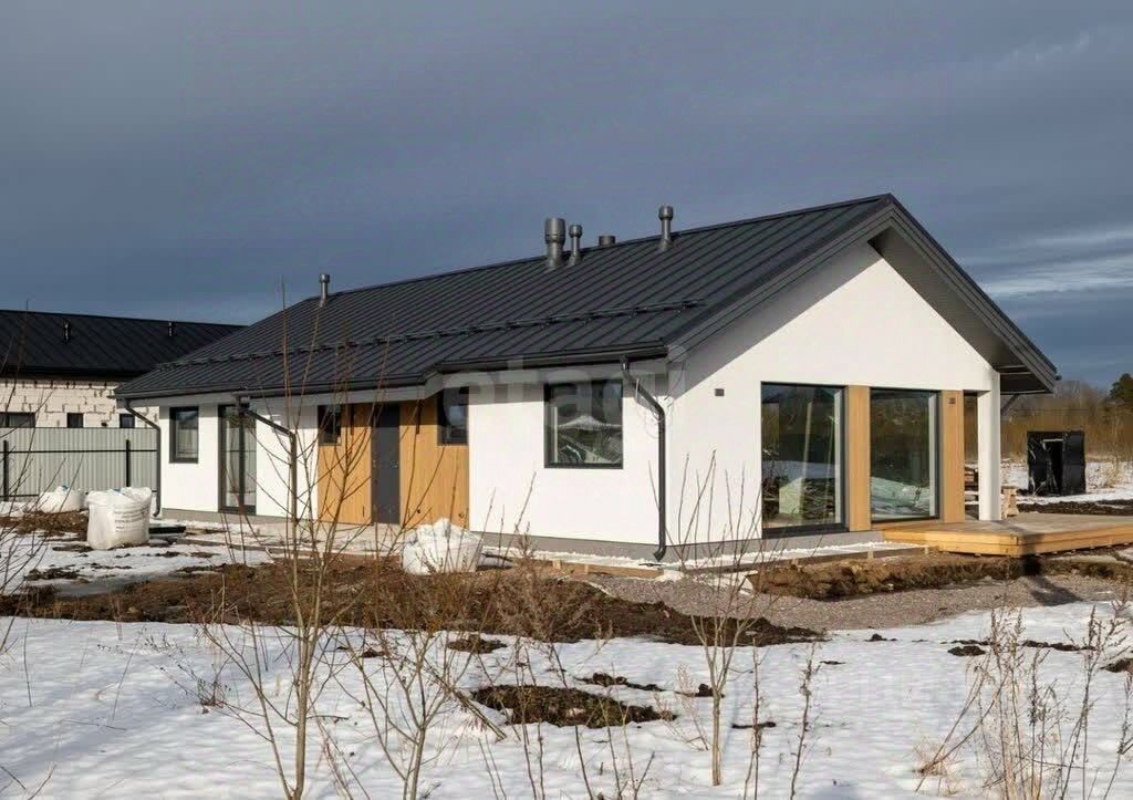 Дом в деревне Шмидтово представляет собой современное одноэтажное здание площадью 82 кв.м, построенное с применением надежных материалов и технологий.