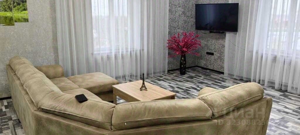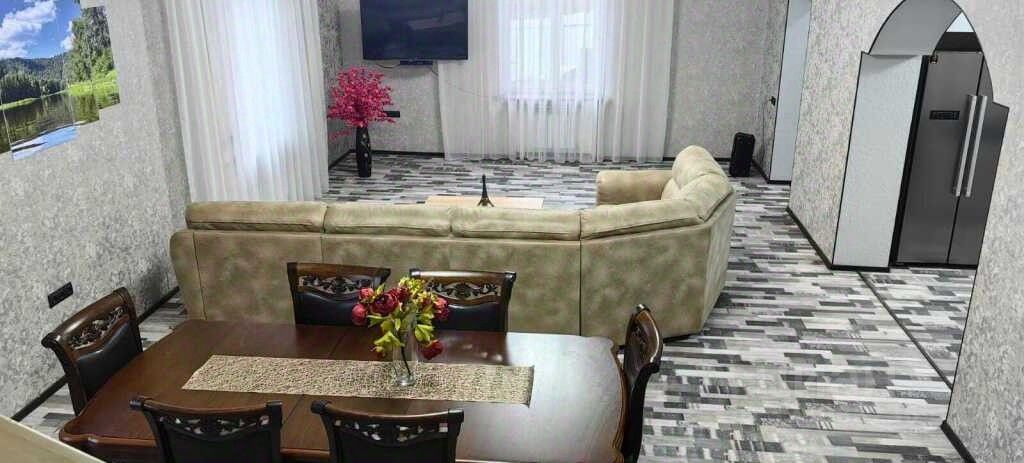 большой раскладной диван и телевизор, в гостинной;