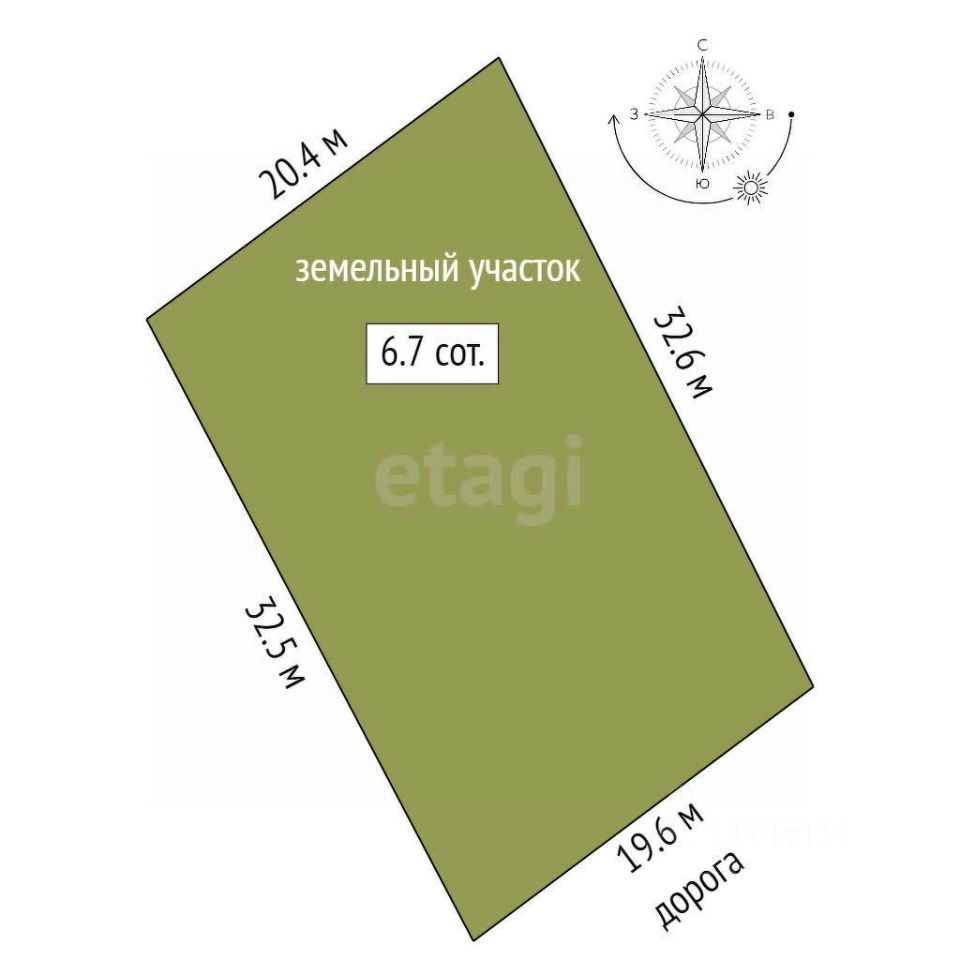 Участок ровный, правильной прямоугольной формы - ширина 19 метров, длина 32 метра.