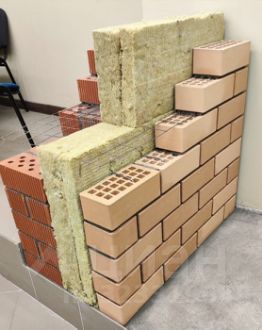 Стены: керамический кирпич + базольтовая вата 150 мм + кирпич облицовочный.