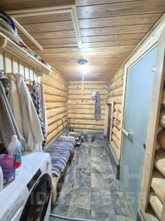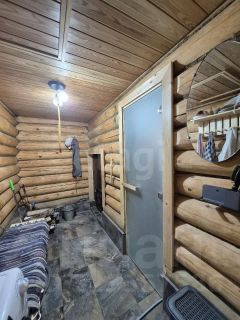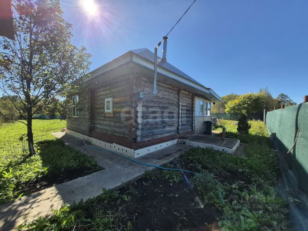 К дому пристроенная баня из бревна.