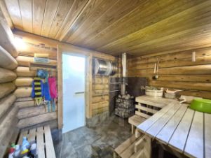 Баня внутри - отшлифованы бревна и покрыты бесцветным защитным составом.
