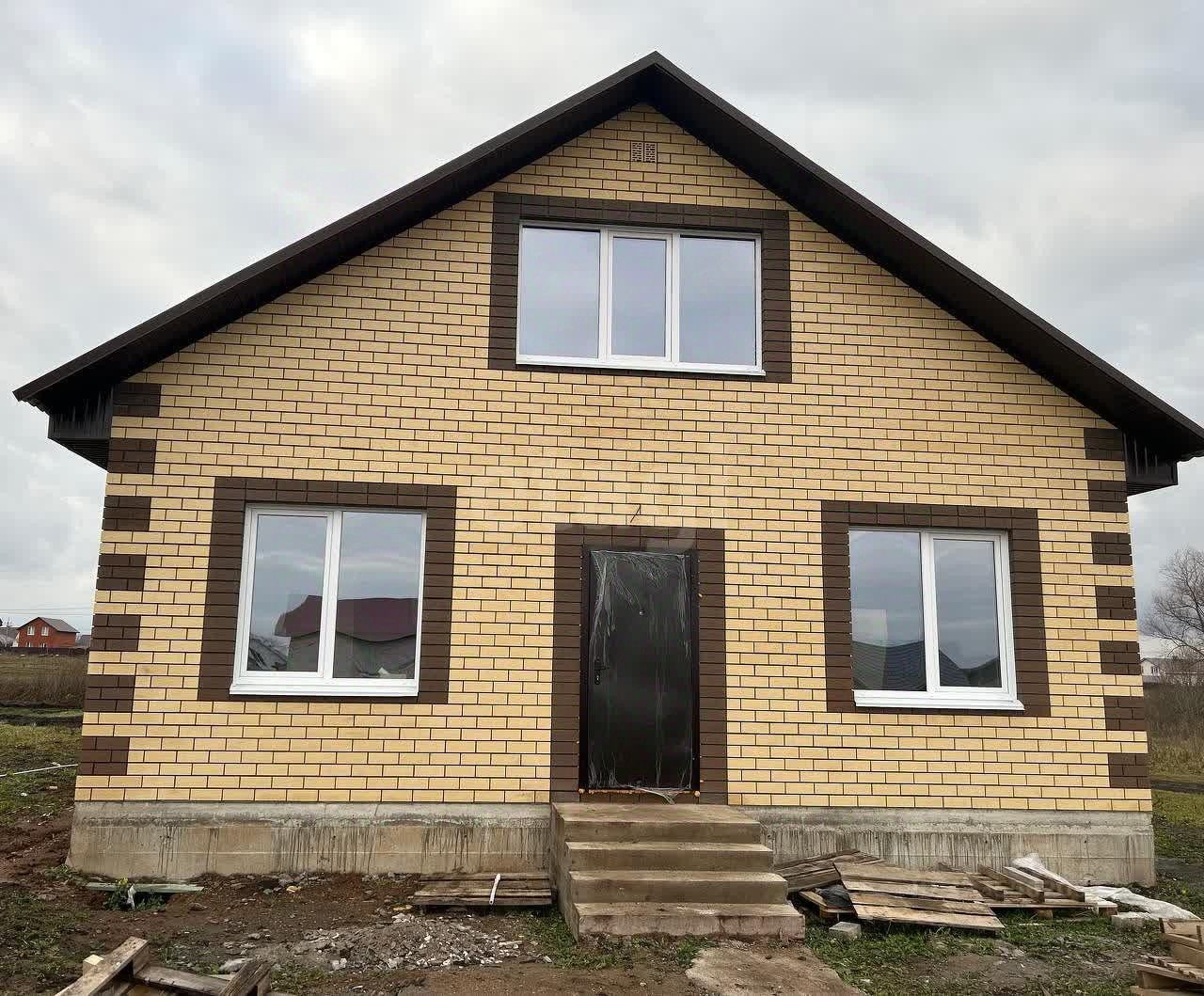 Дом построен из керамзитобетонных блоков — материала, который отличается высокой прочностью, долговечностью и хорошими теплоизоляционными свойствами. Блоки утеплены и облицованы кирпичом, что повышает энергоэффективность и улучшает внешний вид здания. Качественные окна обеспечивают дополнительную звуко- и теплоизоляцию.