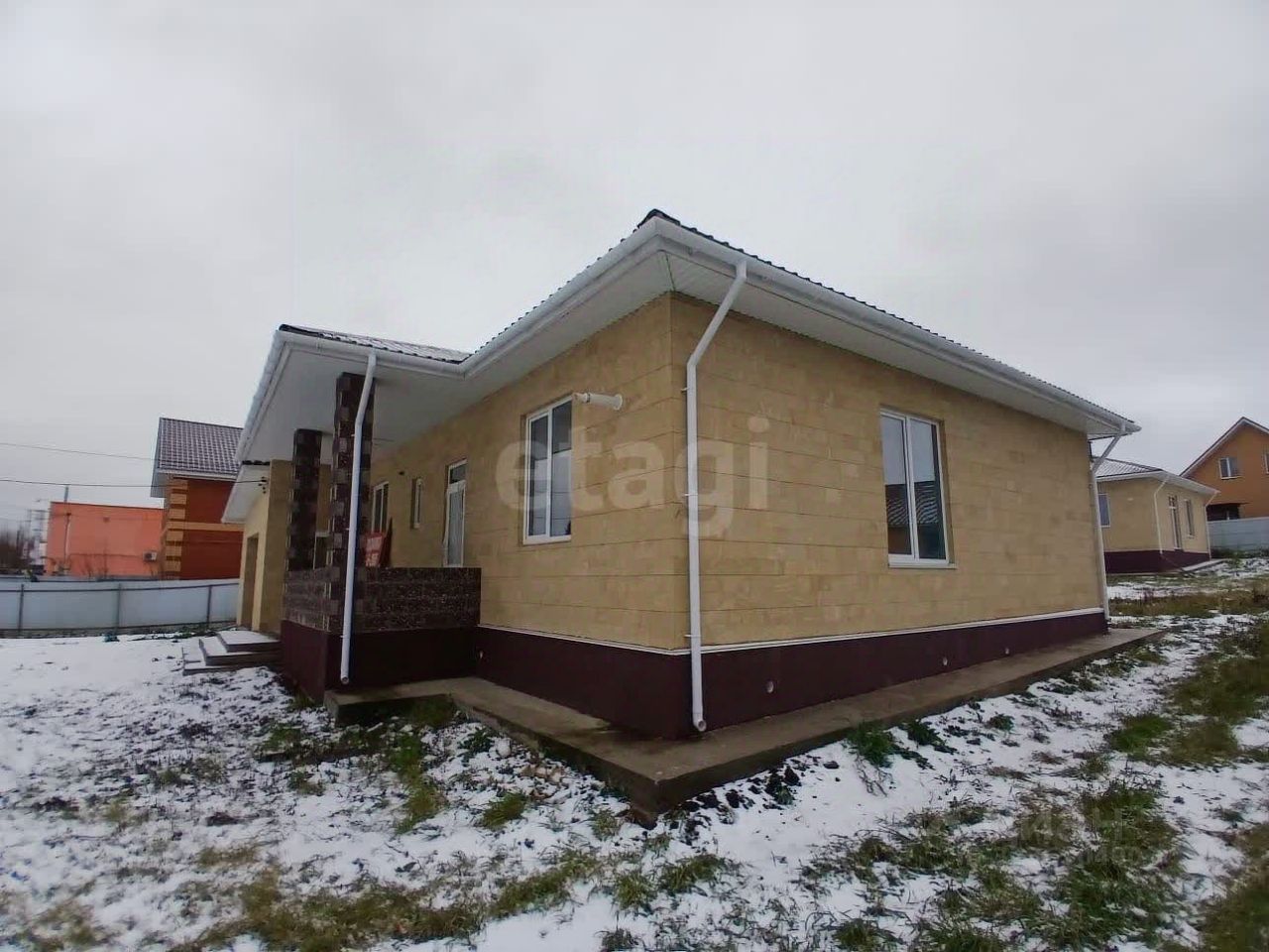 Дом площадью 110 кв.м (+гараж) расположен на благоустроенном участке 9,4 сотки. Конструктивные особенности обеспечивают высокую энергоэффективность и долговечность: стены из газоблока толщиной 40 см с каменной облицовкой, надежный свайно-ростверковый фундамент с отмосткой и утепленная кровля из металлочерепицы. Установлены современные окна с 70-мм профилем и входная дверь с терморазрывом. Система отопления комбинированная — газовый котел, теплые полы и радиаторы, что гарантирует комфортный микроклимат в любое время года. Участок полностью подготовлен для проживания, имеется колодец и шамбо. Просторная планировка включает объединенную гостиную-кухню, три изолированные комнаты, санузел и прихожую. Важным преимуществом являются высокие потолки, создающие ощущение простора, и монолитное крыльцо с навесом. Объект находится на стадии предчистовой отделки, что позволяет новому владельцу завершить ремонт по собственному вкусу.