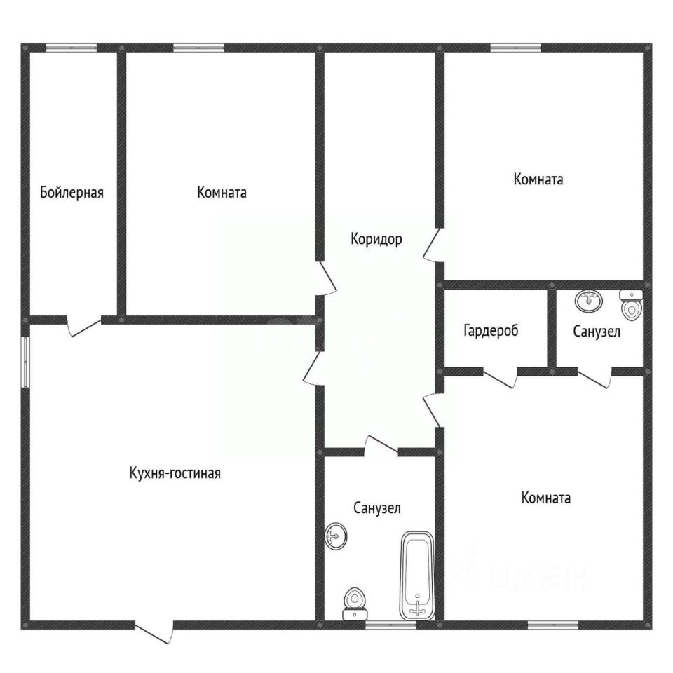Планировка: кухня - гостиная с выходом на террасу, 3 спальные комнаты, одна из которых мастер-спальня со своим сан узлом, гардеробная, отдельная ванная комната и прачечная, совмещенная с бойлерной.