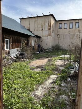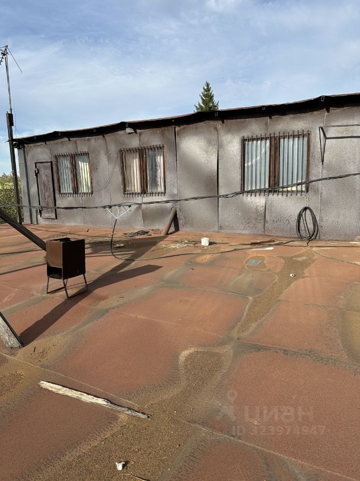 На участке расположено строение общей площадью более 300 м2, два этажа. Из толстого металла. Есть проблемы с крышей (протекает). На первом этаже размещен большой гараж, высота потолков ~4 м. На втором этаже три больших помещения с отдельными входами.