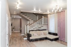 На второй этаж ведет монолитная лестница. Широкие ступени и безопасный спуск, и подъём как для детей, так и пожилых взрослых.