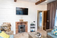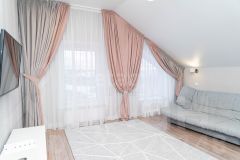 Строение дома сваи, лента, плитоперекрытие между 1 и 2 этажом. Высокие потолки и панорамные окна дают много света и простора как на первом, так и на втором этаже.