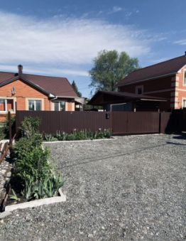 Есть выход на задний двор-металическая лестница и навес. Откатные автоматические ворота. Беседка сделана так, что позволяет ей пользоваться как навес для автомобиля. Перед домом два парковочных места. Дом очень теплый, толщина стен 60 см-полностью кирпич.