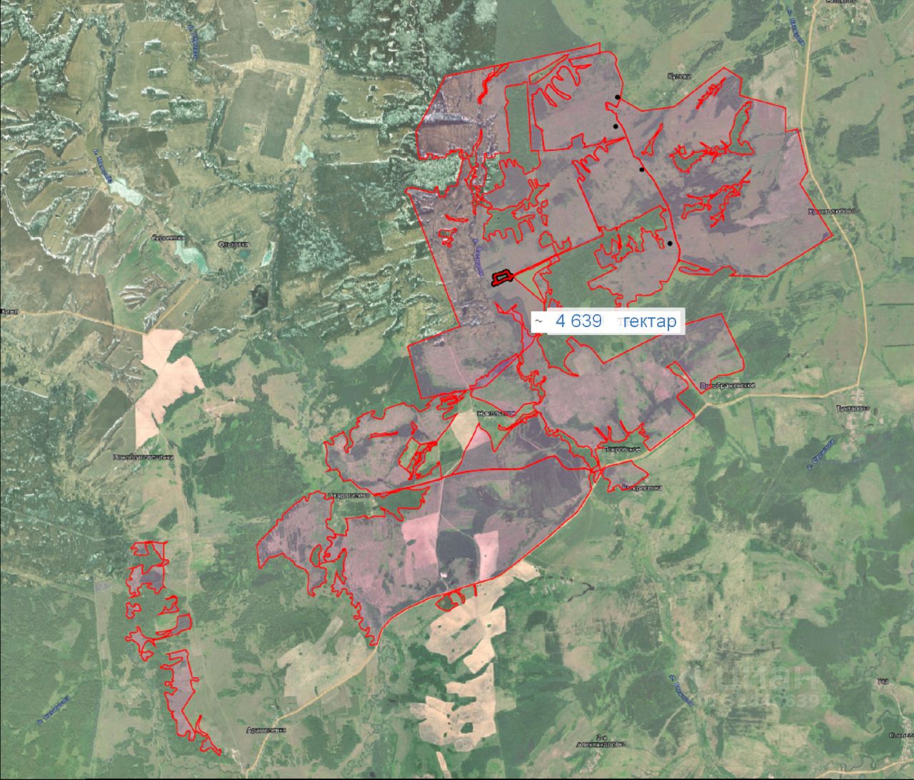 4639 Гектар,земельный массив, расположенный в 55 км от г.Уфа. В Благовещенском районе, с возможность увеличения площади Район находится в удобной локации, как в направление экспортных поставок на Европу, так и в Китай, также и по отношению к крупным городам России Земельный массив 4639 Га состоит из 2- участков ( 2349 га и 2290 га ) смежных друг с другом. Не сильная залесенность полей позволяет ввести основной объем ( 70%) в оборот в первый год. Земли участвуют в программе по введению залежи в оборот, которая позволит получить субсидию около 20000 руб/га. В данном районе есть потенциал трудовых резервов, что не мало важно для развития сельскохозяйственного предприятия. Подходящий климатические условия для производства востребованных культур на экспортных рынках, таких как (чечевица, подсолнечник, лен, бобовые культуры, зерновые). Почвы в данном районе серые лесные, гумус 3-6%, умеренные осадки, что в достаточной мере позволит получать необходимый урожай с высокой рентабельностью производства Строения отсутствуют, продается земельный массив Данный район подходит для строительства масло перерабатывающего завода, ввиду наличия большой сырьевой базы, подсолнечника, льна, рапса, близости к основным логистическим маршрутам, наличия инженерных коммуникаций.