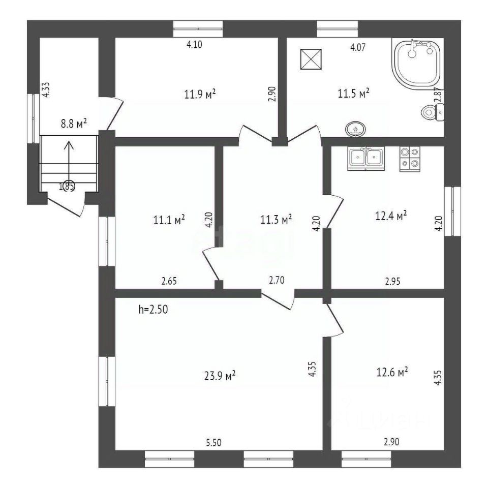 Обратите внимание на план дома, ощутите правильное распределение площади и оцените комфорт: большая гостиная -24 кв.м, кухня - 12,4 кв.м, две удобные спальни, просторный совмещенный санузел с душевой кабиной. Дом для большой семьи !