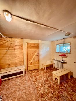- Выход в баню из дома и с улицы. Баня оснащена дровяной печью топи-мойся, проведен водопровод.