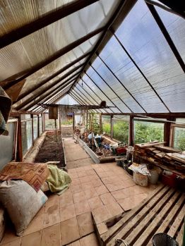 - На участке расположена большая теплица, плодово-ягодные насаждения, декоративно цветущие растения и кустарники. Участок угловой, заезд с двух сторон.