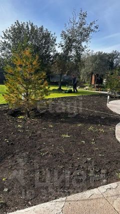 Участок благоустроен по готовому ландшафтному проекту: территория выровнена, засеян газон с системой автоматического полива, проложена круговая дорожка протяженностью 120 метров. По периметру установлено освещение. На участке уже построены новая баня и капитальный гараж из шлакоблока, обустроена парковка на несколько автомобилей. В текущем году добавлена просторная терраса с солнечной стороны. Существует утвержденная дизайн-концепция дальнейшего развития территории с зонами для бассейна, огорода и детской площадки.