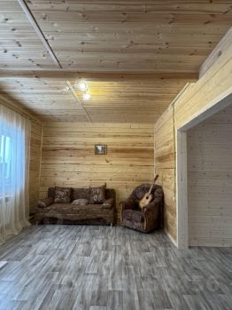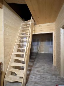 Дом построен из бруса в стиле Барнхаус, с мансардным этажом.