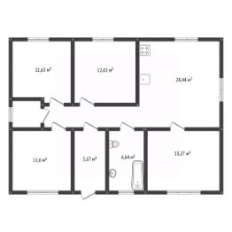 Планировка функциональна и включает гостиную, кухню, три изолированные комнаты, санузел, бойлерную, прихожую и холл.