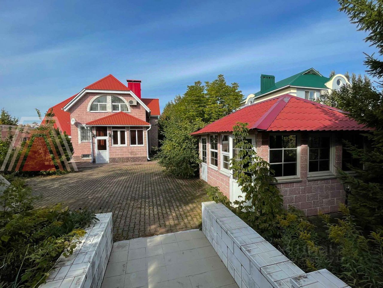 Участок:17 соток, территория облагорожена, хвойные деревья, туйи, плодово-ягодные насаждения, территория покрыта тротуарной плиткой, есть теплица, зона барбекью, беседка закрытая.
