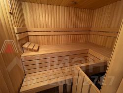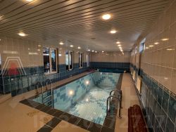 гостевой дом 1 уровень бассейн с противотоком размеры 3,8мХ8 м, кухня, сауна, санузел, душевая