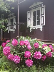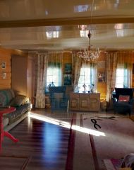 Дом частично из бревна (зал и гостевая), частично из шлакоблока и обшитого кирпичом (спальня и кухня.