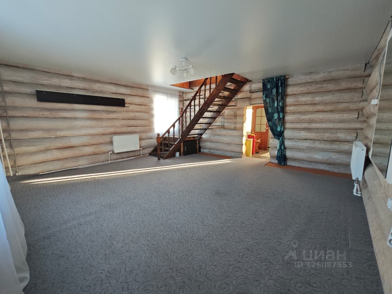 Дом 2021 года постройки, возведенный из натурального бревна (кругляка). Это жилье, которое дышит. Снаружи дом надежно утеплен минватой (100 мм) и обшит современным профнастилом с имитацией бревна — эстетика дерева без лишних хлопот по уходу.