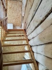 Площадь дома с мансардным этажом - 85кв. м. Есть терраса с зоной отдыха. На первом этаже расположены кухня-гостиная, одна спальня и санузел. На мансардном этаже просторная площадь под спальные места.