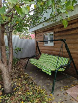На участке новая баня, теплица, металлический гараж, который используется как хозблок для хранения инструмента и садового оборудования, парковочное места на участке и перед домом, яблоневый сад.
