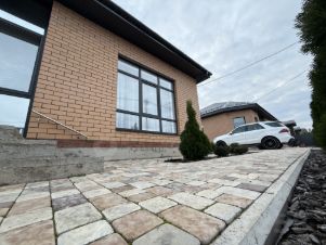 На территории ухоженный двор с аккуратной гранитной брусчаткой, уложенной на армированный бетон и обрамленный бетонным бордюром. Имеются зеленые насаждения, туи различных сортов и хвойные деревья. По периметру участок огорожен забором, установлены откатанные ворота и калитка. В шаговой доступности магазины, пункты Ozon и WB, остановка школьного автобуса, что делает проживание здесь еще более удобным. Земельный участок относится к категории ИЖС, что открывает возможности для дальнейшего развития.