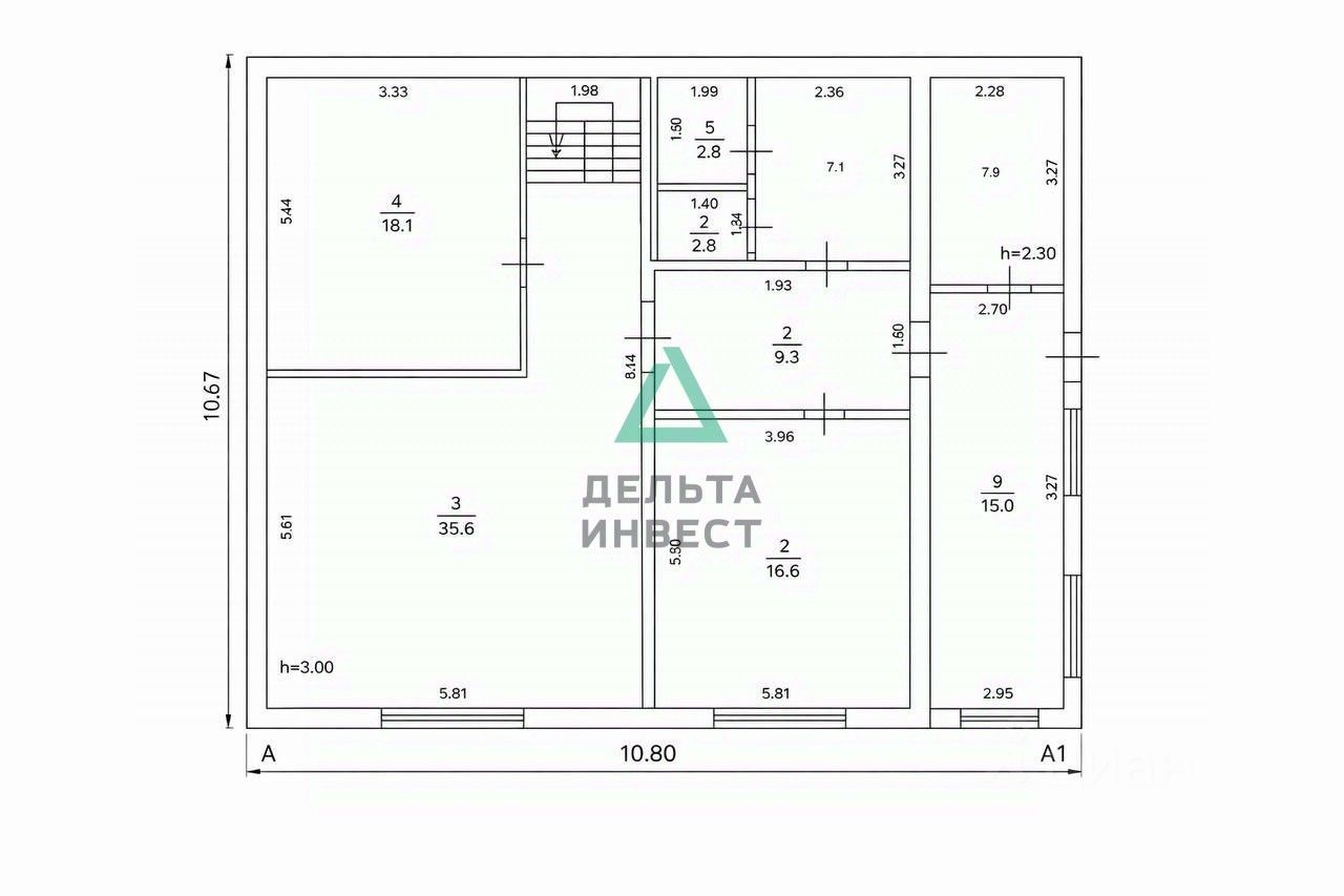 высота потолков: 3 м;