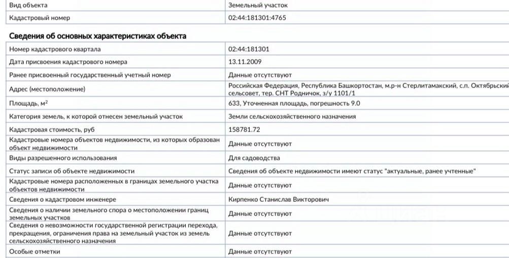 Статус участка
