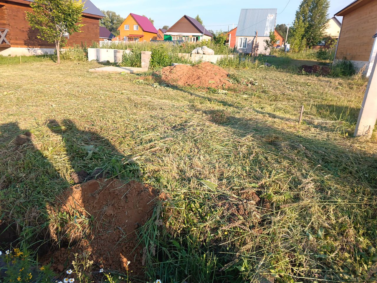 Продается участок 6 сот (15 м * 40 м) с залитым фундаментом под дом 8*8 , есть шамбо и колодец.Так же на участке стоит здание под баню, из сруба и пристроя к нему из ОСП 6*4 на ленточном фундаменте.