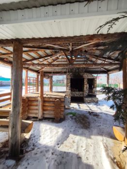 Гараж на две машины, мастерская, гаражные ворота на электроподьемнике. Заборные ворота при въезде также на электроприводе. Во дворе беседка с камином для приятных вечеров с барбекю и шашлыками. Отдельный домик для инвентаря.