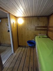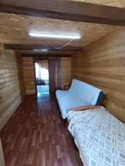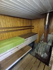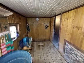 Баня/Сауна: Отдельная, теплая (6х4 м), с раздевалкой, подведенной водой, теплым полом, лежаками из корабельной доски.